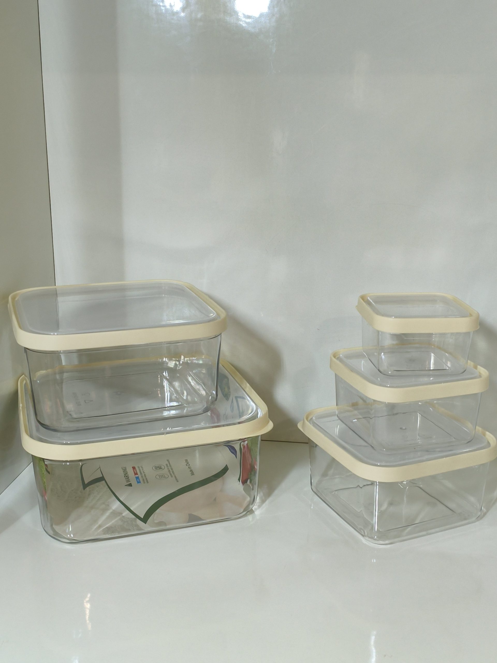 مجموعة من التبرويرات ٥ احجام شفاف مع اطار كريمي كبس بلاستيك مقوى